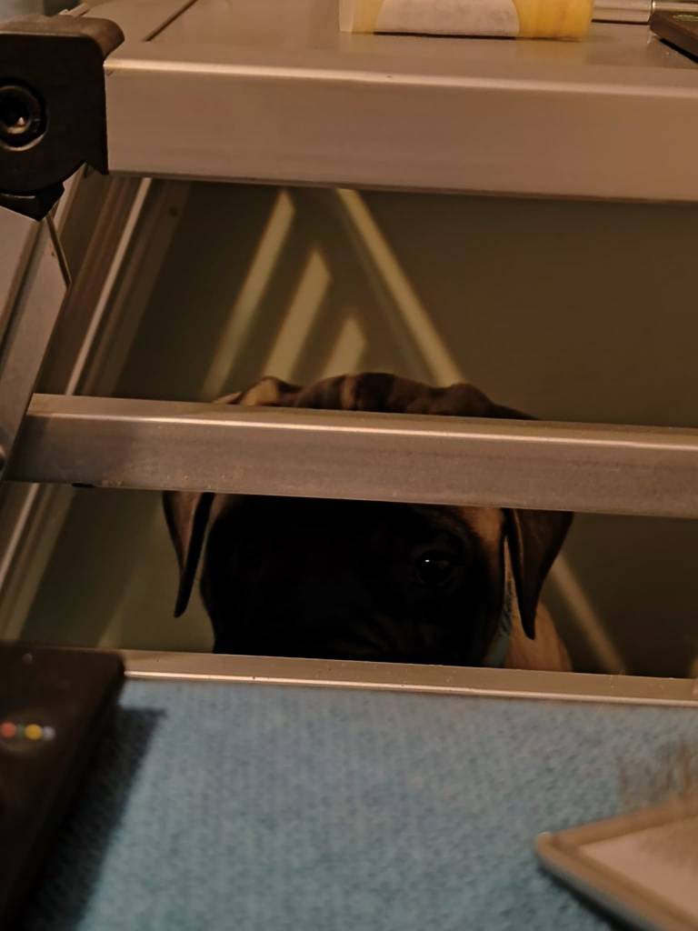 Ce a fost foarte interesant in tot procesul asta, este ca desi la prima aruncare de privire femela brindle era pentru noi, cumva senzatia (uitandu-ma in urma) a fost ca atunci cand ai un crush pe cineva care este tipul tau si fie ca ajungi sa ai o relatie sau nu, la pierderea respectivei persoane simti ca ti s-au innecat toate corabiile, ca apoi sa constati ca nu era cine trebuia in the first place si ca persoana care a venit in locul respectivului/respectivei iti aduce efectiv un sentiment de pace interioara si liniste/calm.