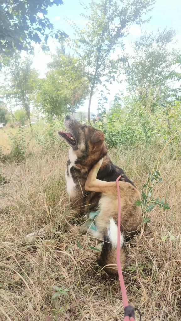 Cu Ciupi a fost mult mai simplu, caci a fost cazata la Dalgi Vet, in zona Carol, unde am putut sa o vizitam mai frecvent si cu mai mare usurinta, folosindu-ne la maxim de puterea haitei in reabilitarea ei. Ciupi avea atunci pana intr-un an de zile, se recuperase cu greu fizic dupa niste prime incercari pe care viata i le-a aruncat si nu avea niciun dram de incredere in oameni. Asa ca am luat-o pas cu pas si primul lucru pe care l-am facut a fost sa o introducem in haita. Cainii au primit-o cu interes si cu calm, astfel incat a iesit la suprafata si din partea ei curiozitatea (cel mai mare aliat in reabilitare)!
