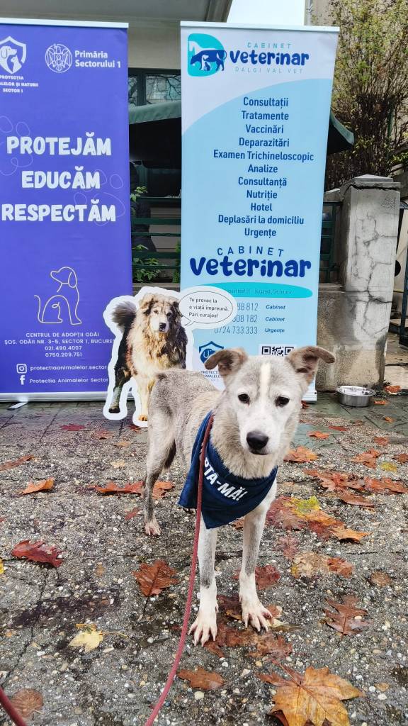 Am tinut-o asa prima luna pana la primul targ de adoptii, din parcul Bazilescu. Acolo ne-am lovit pentru prima data de realitatea din teren! Am fost acolo special pentru a fi de fata cand se arata oameni interesati de cainii cu care noi am lucrat, sa le povestim despre ei, sa facem cat de cat o selectie a oamenilor si un matching potrivit intre caini si ei. Lucrurile nu au mers atat de smooth cum ma asteptam eu… Ca sa intelegeti mai bine situatia, la acel moment eram in comunicare mai mult cu grupa noastra de la curs decat cu oamenii de la adapost. Cunoscusem un ingrijitor (mai mult sa zicem un administrator de fapt) si pe Raluca (unul dintre veterinarii de la Odai) dar nu facusem schimb de contacte si eram cumva aerieni. Asa ca am mers ca doua floricele crezand ca toate vor fi roz bonbon si ca unse. Lasasem vorba la vetul de la adapost sa ii trimita pe Junior si pe Frumuselul, care erau catusi de cat mai pregatiti sa treaca prin procesul de pus lesa si hamul pe ei, bagat in cusca, urcat cusca in duba, drumul pana la Bazilescu, apoi descarcat custile si intr-un final sa ii scoatem noi, sa ii luam intr-o scurta plimbare si sa ii obisnuim cu locul cat si sa ii prezentam potentialilor adoptatori.