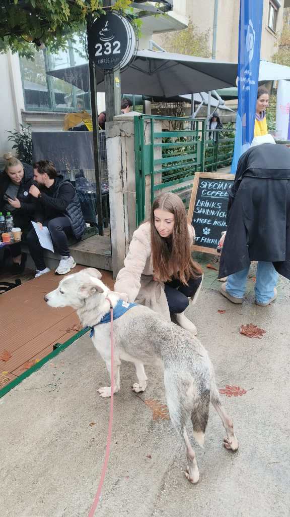 Intre timp a mai aparut o catelusa pe radarul nostru via Tudor Tim, care a solicitat ajutorul si pentru ea in grupul de curs. Am ridicat mana cand am aflat ca este la Dalgi. Si asa am ajuns sa o cunoastem pe Sonia! O femela tare frumoasa si timida, care avea nevoie stringenta de socializare. Asa ca am adaugat-o si pe ea la palmares. Aici s-a implicat si Robert, la recomandarea noastra, si si-a adus un aport relevant la socializarea si expunerea Soniei, motiv pentru care ii multumim si il felicitam pentru proactivitate!