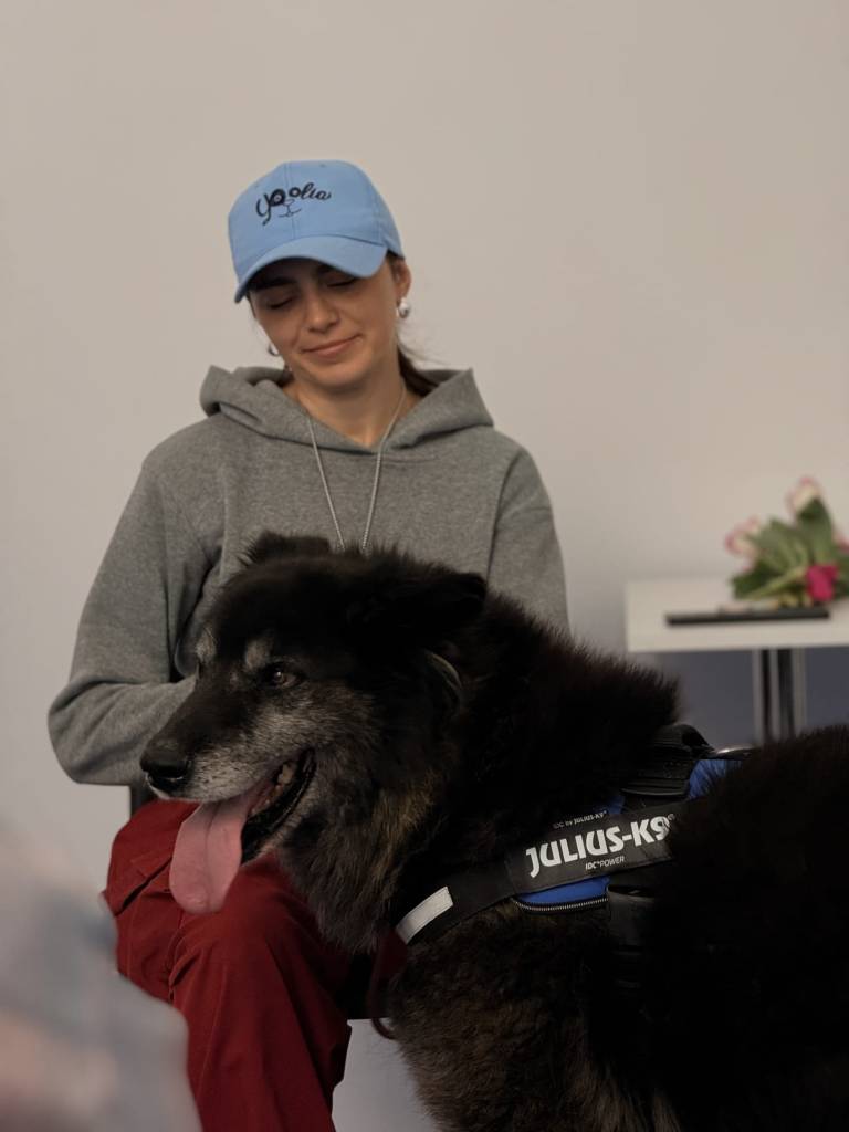 Am facut insa din rahat bici cum se zice si am hotarat sa il ajutam pe cainele cu care venise Uriasul daca tot facuse drumul si era cat de cat mai ok (inclusiv mai curat) si sa il trimitem pe Urias inapoi la adapost sa se odihneasca dupa aventura asta. Nu mai spun ca s-a suparat si colegul de grupa ca i-a ajuns cainele desi lasase vorba sa nu il aduca… A shit show, literally! Fun fact: dupa ce ne-am linistit si am scos respectivul caine din cusca, eu am purces la a o curata caci si acesta facuse nevoile acolo. Si uite asa, imbracata frumos, am pus mana si am curatat rahatul din cusca. Colegul de curs care era cu noi acolo imi transmite a doua zi pe grupul de curs: „Felicitari sincere ca ai curatat tu!”. Eu ma uitam mirata…It’s not like I had a choice, nu e ca si cand lasam cainele sa intre inapoi in cusca peste propriul rahat si nici nu stateam sa curete organizatorii targului, daca tot decisesem noi sa ne ocupam de caine (also, time & experience ne-a imunizat la curatat fecale din custi, nu odata avand caini in gazda care s-au stricat la stomac si au umolut cusca de noroc – asta in cazul in care credeai ca pet sitting is fun!). 😉