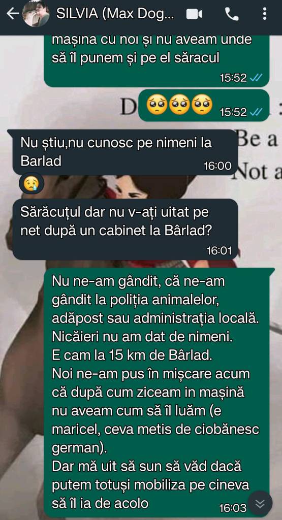 El a ramas si ultima comunicare pe grupul cainelui lor a fost cand am luat-o noi pe Vanya, moment in care parea ca se bucura pentru noi.